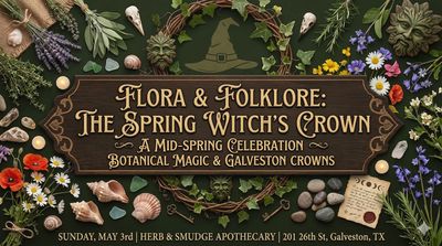 What is this event? We are calling 20 local creators to design and craft the ultimate Spring Witch’s Crown. Using the iconic pointed witch hat as your canvas, you will weave together botanical magic and Galveston folklore to compete for over $400 in prizes. This is a celebration of the "Flower Moon" season, culminating in a public exhibition and a celebratory walk on the Apothecary patio.